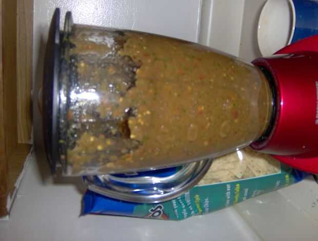 a una licuadora, agregar los TOMATILLOS, tomates, cebolla, CILANTRO, comino y un poco de sal de ajo. AÑADIR PIMIENTOS ROJOS COCIDOS Y LICUAR.