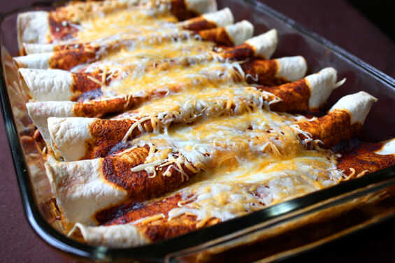 Pop los cachorros en el horno precalentado durante 15-20 minutos o hasta que el queso se haya derretido y las enchiladas están calientes.