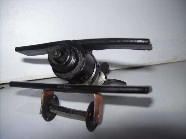 Una vez que el fuselaje estaba listo, con dos ruedas más ligeras hizo el tren de aterrizaje, acabo de tomar un pedazo de hoja delgada de cobre y doblar la forma de las ruedas y pega con una pequeña soldadura tig o sólo grueso o pegamento que quieras. Pruebo con las ruedas interiores de algunos mouse roto. les pegan y se ve impresionante también.