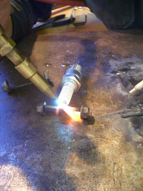Desenroscar el tapón pequeño de la parte superior de la bujía - yo debo recordar el nombre de este pero se me escapa. Entonces calor que hasta un brillo poco agradable de la naranja. Luego use sus alicates de punta para balancear suavemente el enchufe caliente del eje con las ruedas que creó en el paso anterior.