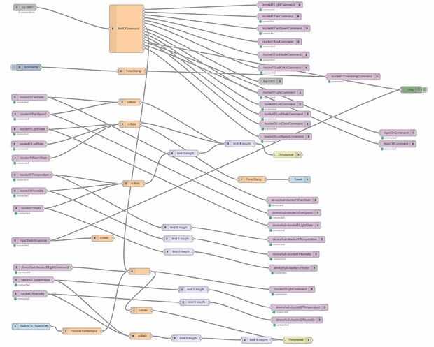 El flujo de nodo de red en el repositorio contiene nodos relacionadas con la toma de IoT como nodos de otros proyectos. La toma de IoT relacionadas con entidades se etiquetan como socket1 en el flujo de nodo de red.