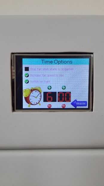- Una alarma de reloj con opciones como interruptor de encendido/ventilador/luz cuando se apaga se puede configurar por pulsación larga de la ventana de tiempo.