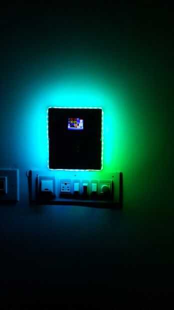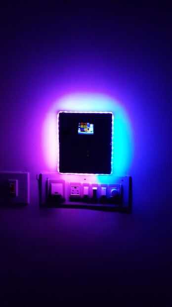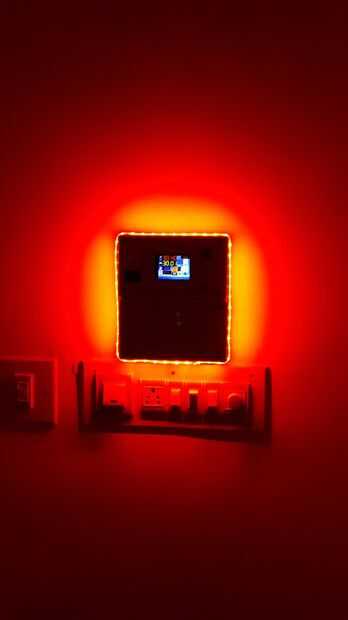 Hay una tira de LEDS WS282b alrededor del recinto. Estos pueden activarse para crear diferentes colores o patrones.
