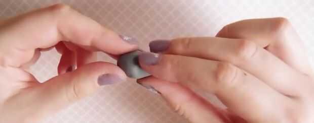 A partir de la bola gris más grande, presione el lado derecho de la arcilla entre sus dedos.