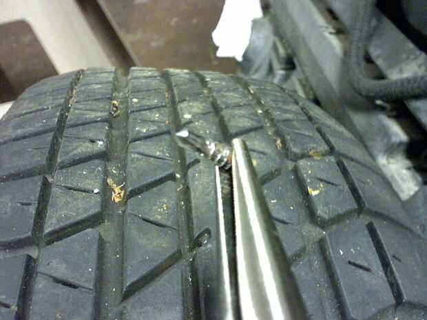 Quitar el tornillo o clavo de la llanta con unos alicates.