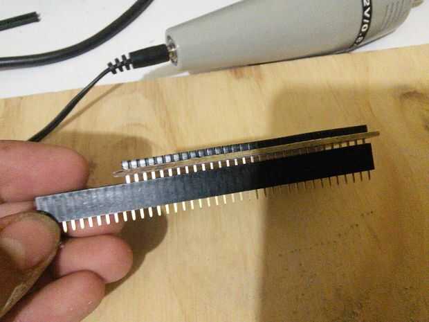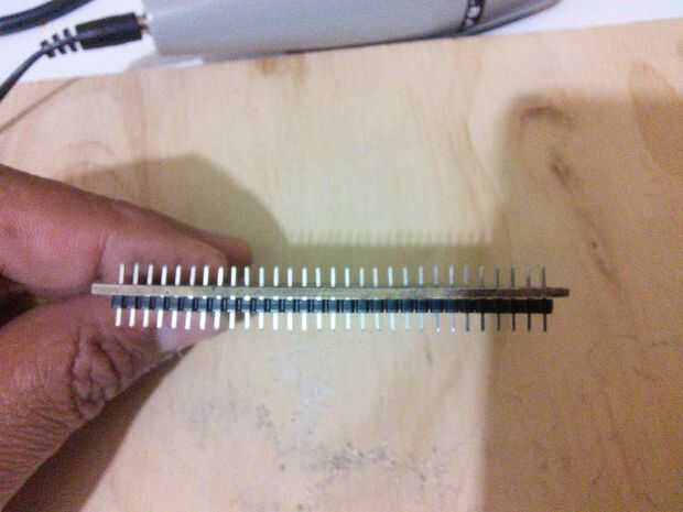 Podemos utilizar una línea de pines hembra de cabecera para tratar de corregir la curva (más de esto en el paso de soldadura).