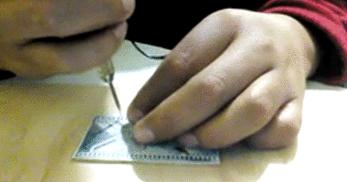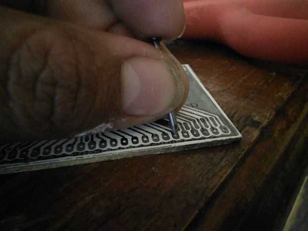 Mi brocha es un Dremmel 1 mm, colocar la brocha en su herramienta, tome una tabla gruesa de madera (para inclinar el proceso de perforación) un aquí vamos! (no te preocupes, el agujero que hicimos con el clavo en el PCB esta ayuda para nosotros para perforación), por el momento solamente perforar una línea de los cojines de exterior.