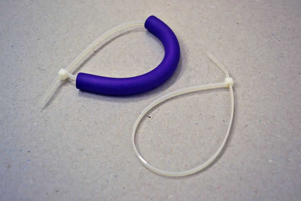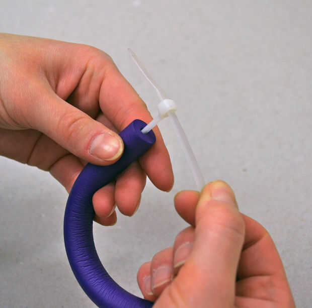 A continuación, crear un lazo flojo con el lazo de cable de threadedc de espuma y lo mismo para el segundo lazo de cable. Tienen que estar sueltas como éstas tendrán que caber sobre el cuerpo del enchufe.