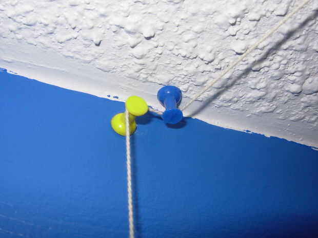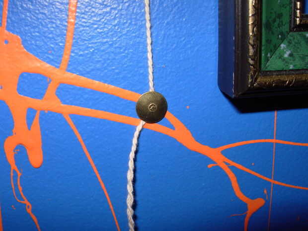 Luego conecte el extremo de la cuerda a la pared con otra tachuela
