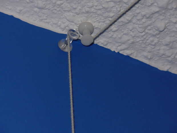 Del palillo una tachuela en la pared y uno en el techo como una polea