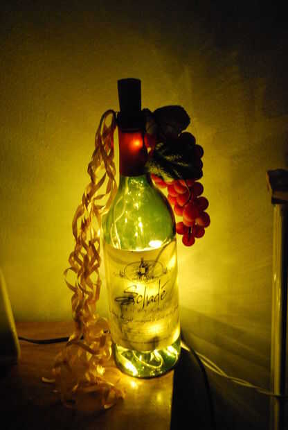 Se necesita 1 botella de vino 1 filamento corto de luces de Navidad Cinta Fake de uvas Taladro