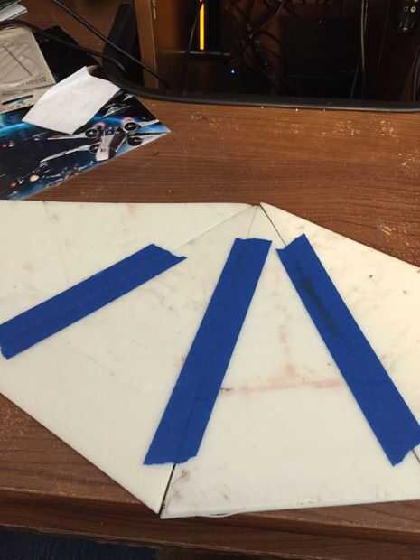 Primero medí el altavoz bluetooth que diseñado para su uso en el centro como dictaría las dimensiones del holocrón. Dado el tamaño de la base, la pirámide echada a un lado cuatro tenía que ser un poco más grande que me hubiera gustado, pero el tamaño es necesario para acomodar al altavoz. He medido y cortar cartón prototipo para asegurarse de que trabajaría con mis medidas. Después las medidas correctas, usé 123Design de Autodesk para crear cada panel.
