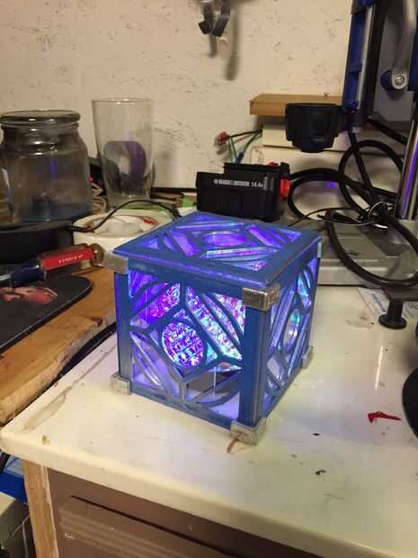 Los archivos STL para el Jedi holocrón son sólo un simple bajo con un lado que se supone imprimir cinco veces diferentes. Una vez que lo hice, sin embargo, no podía dejar allí. Mi holocrones han construido en altavoces bluetooth con LEDs para iluminar y puede hablar con usted y reproducir archivos de audio. Proporciona un efecto muy agradable.