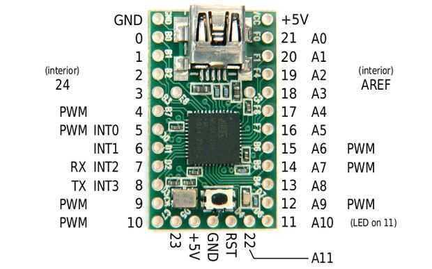 También puede echar un vistazo en el diagrama del pinout de Teensy 2.0 para que sepas cómo Teensy conecta a cada parte del código.