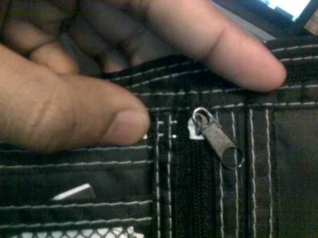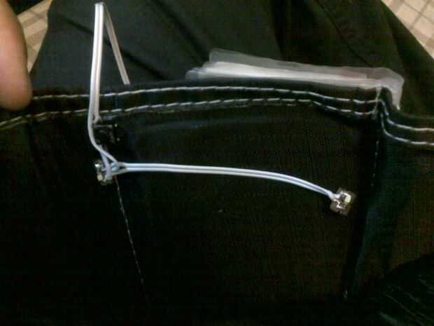 Antes de iniciar el proceso de costura, decida donde quiere poner primero el soporte de batería y el interruptor. Coloque y fije el interruptor o coser si su cartera es demasiado gruesa/dura para pasar las piernas. Os adjunto mi puesto que era bastante fácil de pasar las piernas.