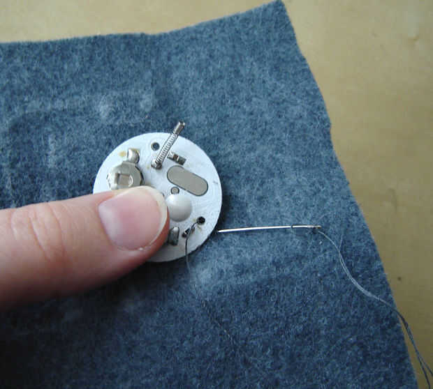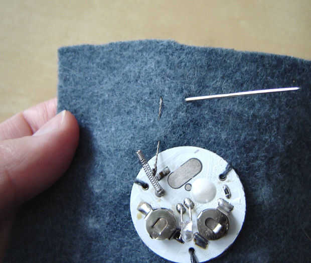 Con una puntada corriente había cosido a lo largo de la ruta hacia el interruptor y me ató el hilo a una de las patas del interruptor.