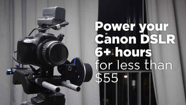 En este video te muestro cómo para tu Canon DSLR para más de 6 horas por menos de batería $55 incluida. 6 horas de batería es bastante realmente para cualquier evento. Además de la extra es que la batería está ahora fuera de la cámara y una batería que es para las cámaras de película, por lo que estas baterías tiene menos problemas con el sobrecalentamiento. Como la mayoría de réflex digital tiene problemas con la calefacción para arriba como sus baterías no son hechas realmente para el rodaje y el uso tanto poder las baterías se calienta después de una hora de rodaje espalda con espalda o si están filmando en una zona caliente. Pero con esta configuración de la batería en primer lugar es fuera de la cámara y permiten enfriar mejor, pero también estas grande Sony NP-F970 son estructura para grandes cámaras ENG y puede manejar la potencia de salida mucho mejor sin conseguir caliente. Otra cosa es que el indicador funciona y que incluso iría en rojo cuando la batería está baja. Sin embargo la baja en estas baterías aún puede película bastante tiempo con él en rojo antes de su realmente agotado.