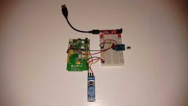 El esquema muestra un relé de 5V simple controlado por un transistor NPN. Si usted decide que usted utilice un módulo de relé de 1 canal, no necesitas R1, Q1 y U1. Conectar D12 de Linkit a señal de entrada del relé.