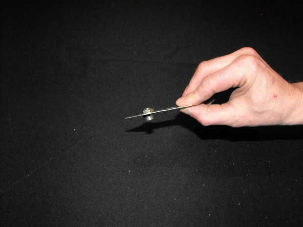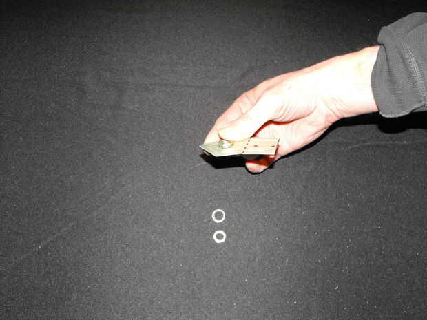 5. Dibuja un círculo de 3/8" en la marca que acaba de hacer, taladrar o perforar el agujero en la marca que permite que todo subproceso caber a través de