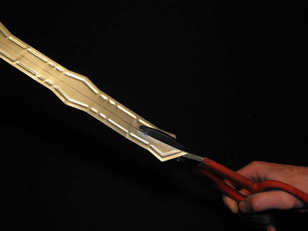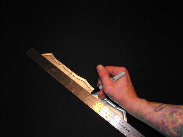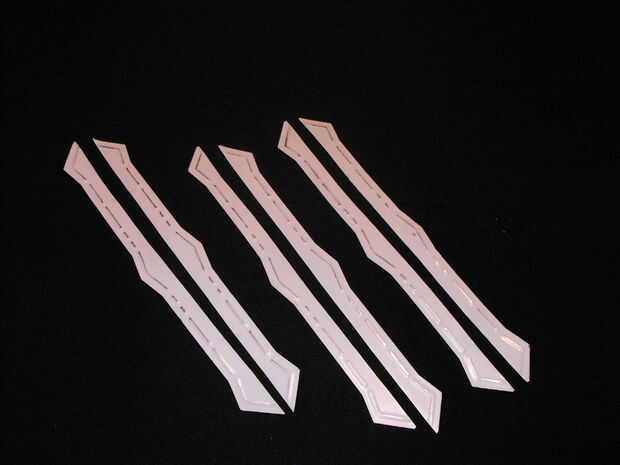 1. 3 de las cintas con cuidado hacia abajo el medio sabio, creando 6 tiras más delgadas del esquileo