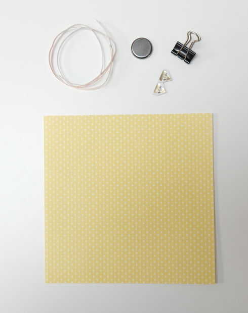 Crear una tarjeta de felicitación de centelleo luminoso horizonte.Paso 1: Materiales necesarioscartulina blanca 1/2 hojacartulina 1/4 hoja negroCinta conductiva de cobrePegatinas de LED (mostrado en este proyecto son Chibitronics)Broche aprietapapel