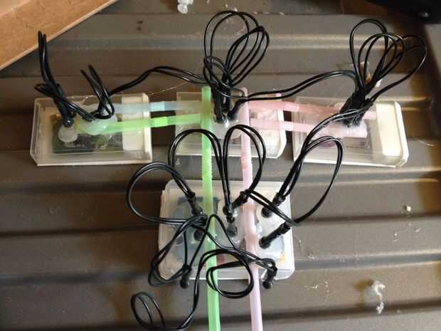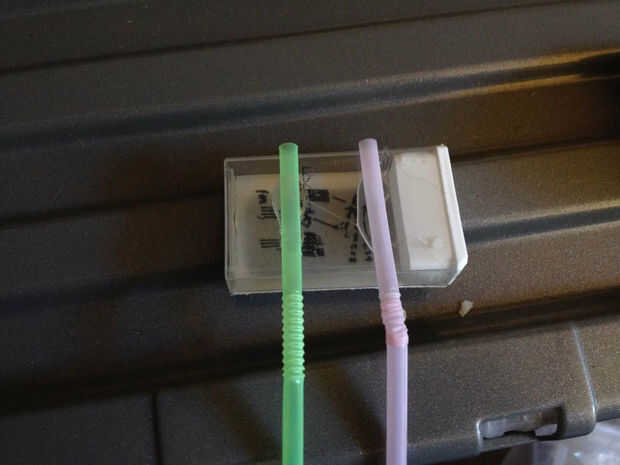 Recortar cuatro pajas usando las brocas flexible para crear las pantallas horizontales pegando caliente les viene de la parte de arriba más monitor.