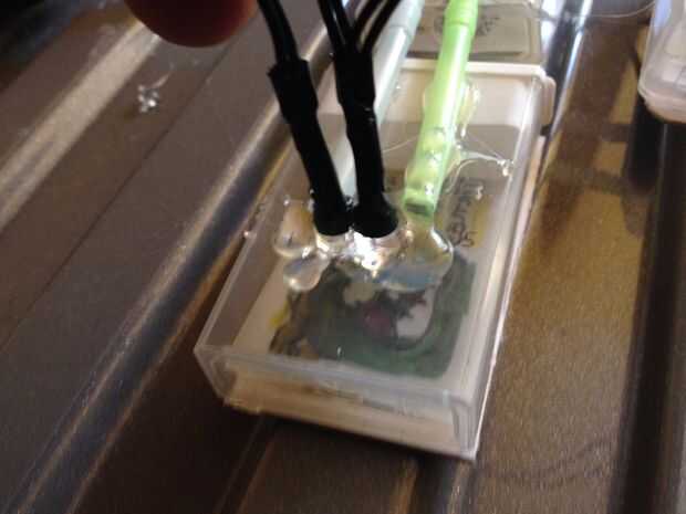 Sujete las luces contra la parte trasera de los monitores y ponga una cantidad abundante de pegamento caliente alrededor de él para sellar la caja tic-tac. Tuve 20 Bombillas en este filamento había destinado por pantalla más pequeña, seis a la más grande y luego dos debajo de la pantalla grande para actuar como luces de escritorio conectado.