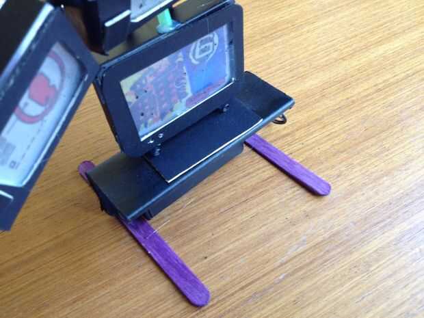 Si su tarjeta es grueso suficientes barras de pegamento sus dos chupa-chups en actuar como pies. Si no está lo suficientemente espesa cola a la batería, sólo asegúrese de no pegar la batería cerrada así que puede reemplazar las baterías.