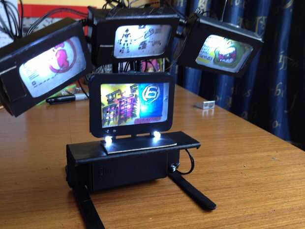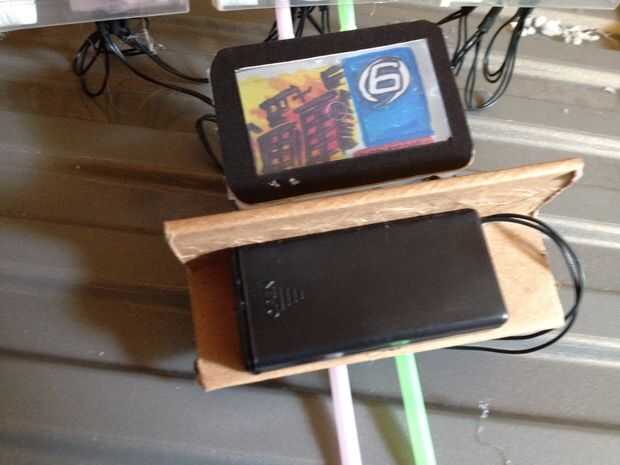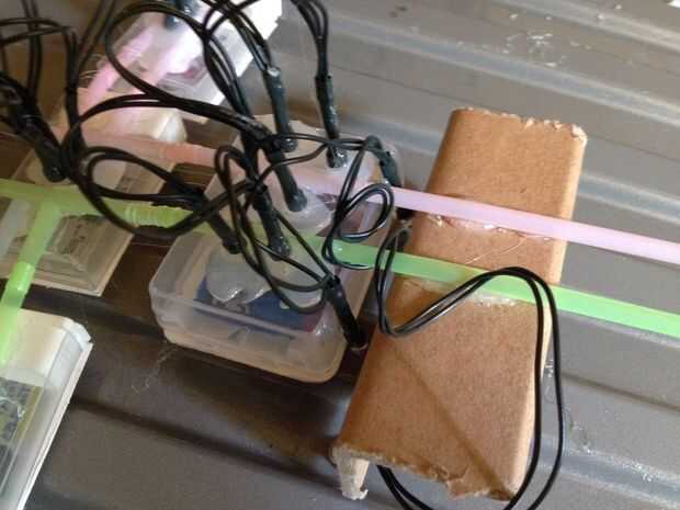 Pegar el paquete de baterías de las luces contra la parte posterior de la mesa, mantener apretado en la parte superior y esto actuará como un soporte.