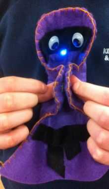 aquí es un proyecto de circuito suave fácil y divertido. Tomé Robot t-shirt un Instructables y añadido algunos LEDs para los ojos y una roja parpadeante LED para corazón del Robot.  Los interruptores están situados donde están los botones grises en e