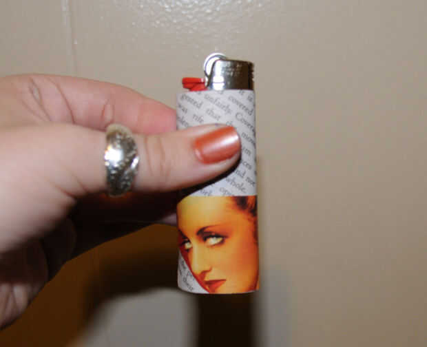 Para recordar a sí mismo cuántas de las imágenes ser visibles al mismo tiempo, usted puede envolver su fondo alrededor de su encendedor unas veces separadas y decoración (ver la segunda foto abajo para un ejemplo, sólo la mitad del rostro de la mujer en mi encendedor será visible en un momento).