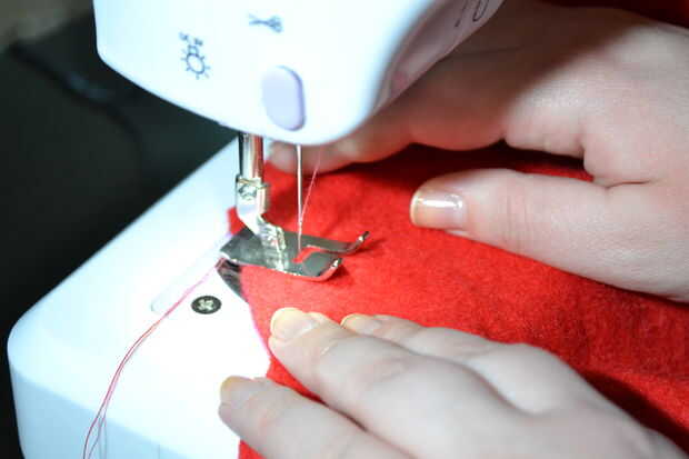 Coser los orificios del brazo es bastante fácil, pero tener una segunda persona para ayudarle a facilita la tarea incluso todavía.