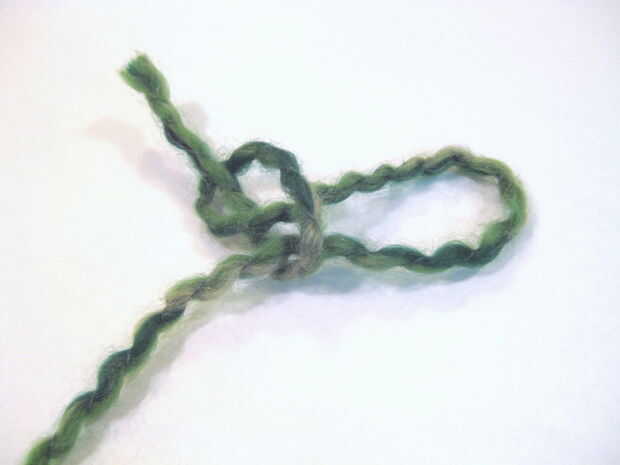 - Tire del gancho a través de lo slipknot para que el hilado que sólo colocó en él es tirado hacia abajo a través de lo slipknot. El slipknot debe deslizarse fuera del gancho, y usted debe dejar con el "nuevo" hilo sobre el gancho.