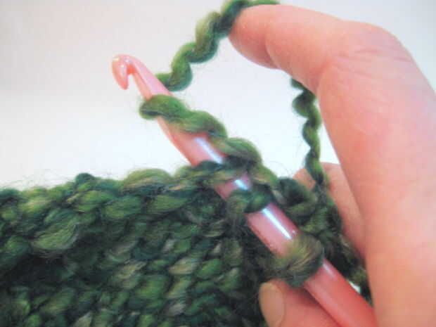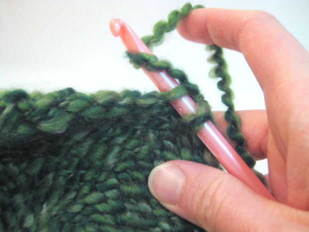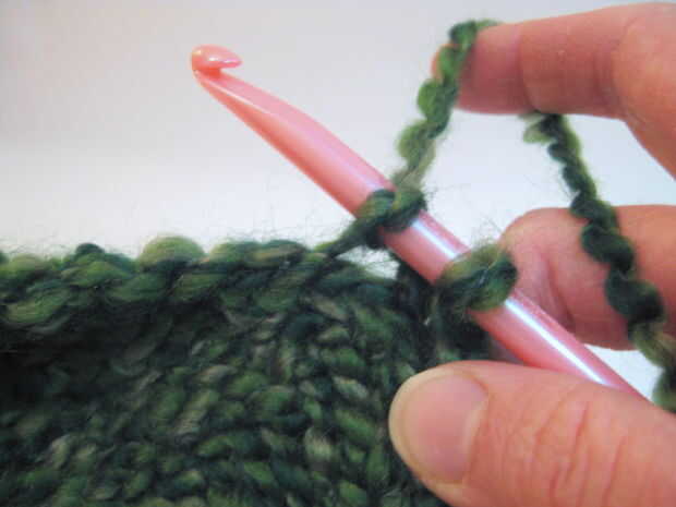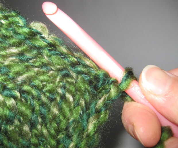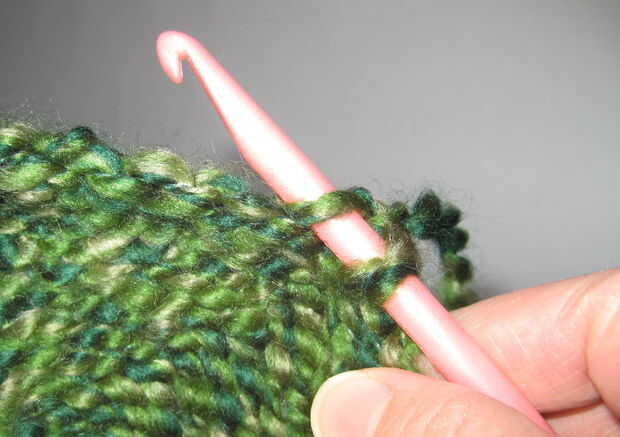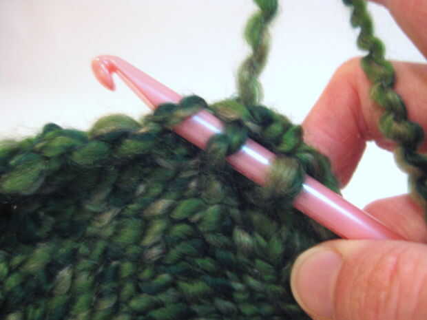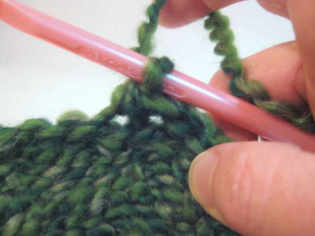 - Retire el gancho a través de sólo la primera puntada en el gancho. (Esto significa que usted debe tener una puntada y un lazo de hilo "nuevo" todavía en el gancho).