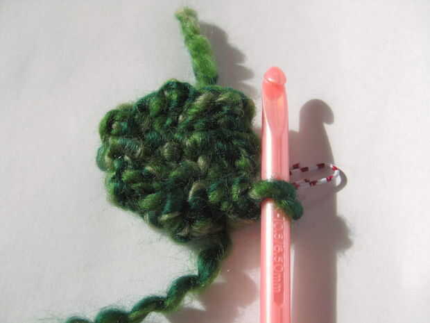 Una vez que termines con las dos vueltas de punto bajo disminuye, estás listo para hacer la segunda de las ramas principales.