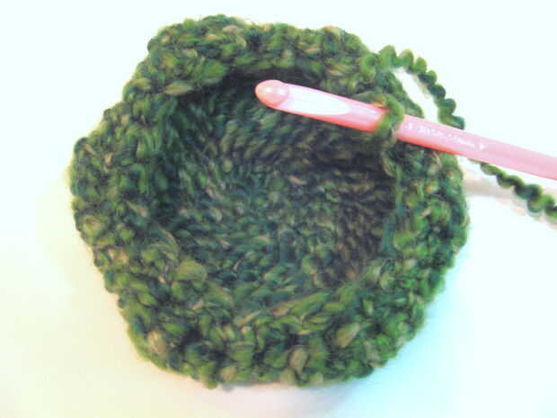 - Ronda 2: Sl st 2, 2 sl st en la siguiente puntada. Repita seis veces (para hacer una ronda completa). (Ahora tendrá total 24 puntos).