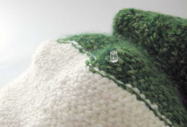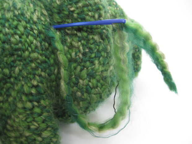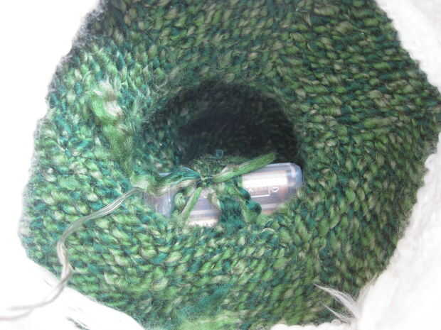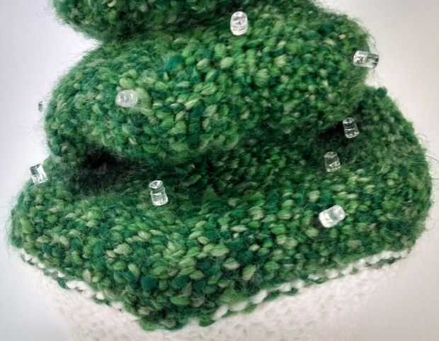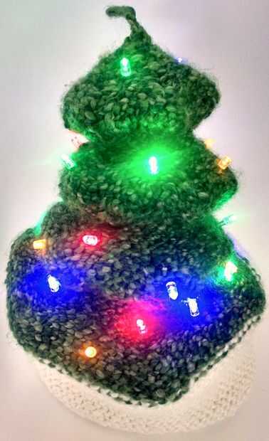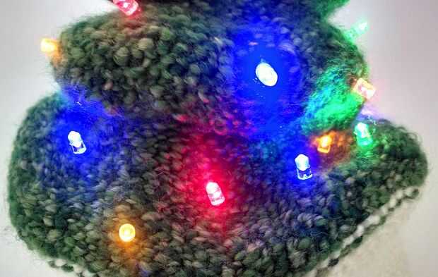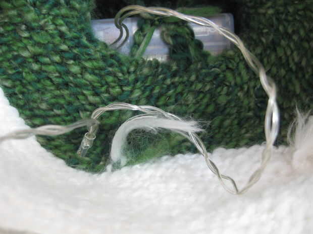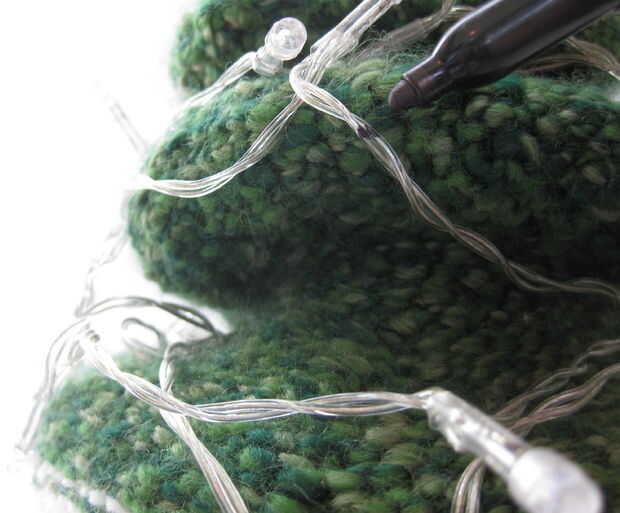 Con la batería en su lugar, comencé a insertar los LEDs en el árbol (del interior). Empujó hacia fuera lo suficiente para mostrar la luz. Porque el sombrero es antideslizante cosida, los orificios son pequeños y apretados, por lo que deben mantener los LEDs en su lugar. Sólo pongo en los lados superiores de las ramas.