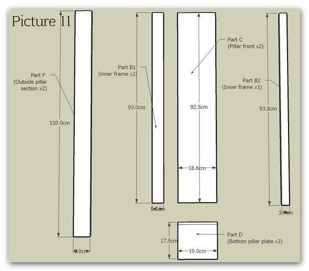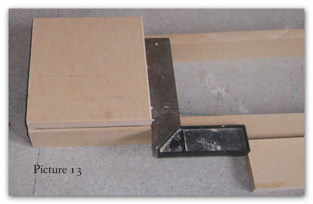 La siguiente parte para donde los pilares. Estos donde formado de cuatro partes, un frente, 2 laterales y una placa base. Hice las paredes exteriores ligeramente más ancha y luego el interno, esto fue para el manto terminado contra la pared de la cama y el yeso hasta el lado sin dejar un espacio. (Fotos 11,12,13 y 14).
