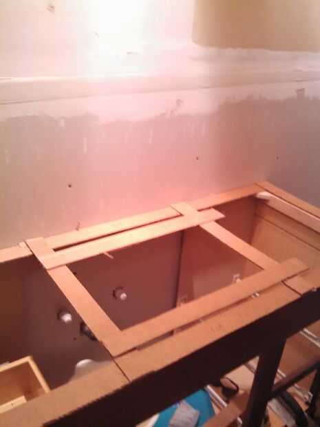 Hice dos formas del fregadero separado de cartón para determinar lo que Lucía mejor en la vanidad nuevo. Al final opté por el disipador más pequeño.