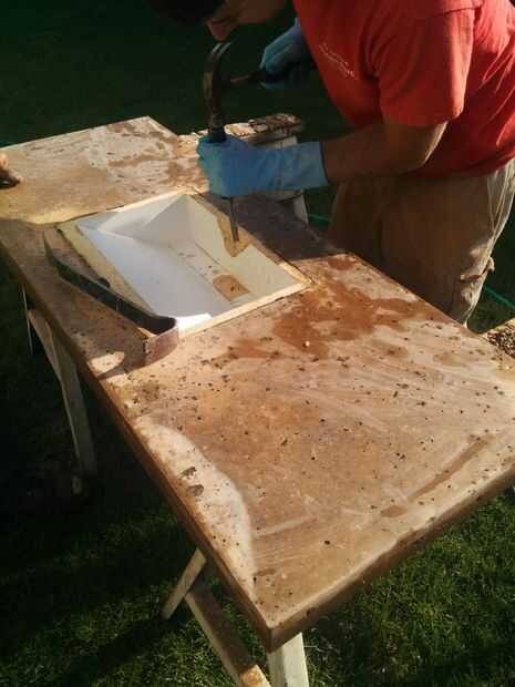 Puesto que la cubierta es delgada queremos esperar que más completamente se curan antes de quitar la forma. Basado en las instrucciones del fabricante que deben esperar unos 7 días para el concreto alcanzar la resistencia anunciada 5000 psi. Yo no he puesto ningún lanzamiento de molde en la forma interior del fregadero. Debido a tuve que cincelar la forma interna para poder quitarlo.
