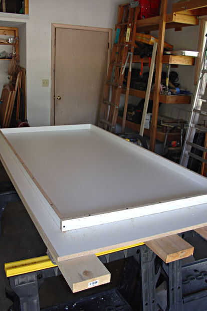 *Mientras que nuestros caballetes robustos y nivel, estaban solamente en los extremos de la base del molde. Después de curar, nos dimos cuenta de un arco muy leve en la encimera. En retrospectiva, nos deberíamos han tenido dos soportes adicionales a través de la longitud. *