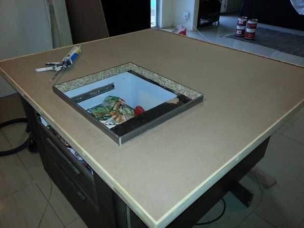 Aquí he añadido la madera del borde y cortar el agujero de la encimera.