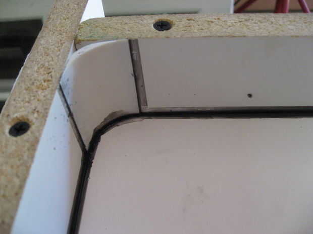 Otro reto era una curva grande que quería poner en la encimera para un rincón pequeño taburete. Para lograr esto, cortamos la curva deseada con una sierra de cinta de dos piezas de melamina que se atornillan juntos. Luego tomamos las piezas laterales de melamina que conectado a la curva y utilizar una sierra de mesa para cortar un 1\8 "por 2" muesca en cada uno de ellos. Cortamos un 1/8" pieza de plexiglás caída a 2" entonces preparado para pegar el plexi en las muescas que cortar en los pedazos de 2 lado. Antes de intentar pegar plexi a cualquier cosa, debe lijar para que el pegamento se pegue. Usa resina de 5 minutos para pegar el plexi en las muescas y les fija. Después de eso, tuvimos 2 piezas laterales con una pieza flexible en el medio que conformaría a la curva que necesitábamos para hacer. Atornilla en la melamina curveada y extensión epoxy sobre la parte posterior de la plexi. A continuación doblar el plexi alrededor de la melamina, sujeta en su lugar y luego atornilla las piezas 2 laterales.