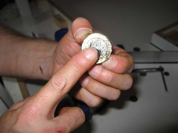 Sr. P Note: "Recuerde, la cara de la moneda que está hacia abajo se expondrá la cubierta terminada. En otras palabras, el lado en que poner la silicona expuesta."