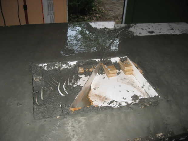 Ahora siga adelante y llenar el molde con el resto de concreto Asegúrese de añadir un poco más que el molde puede contener. Use una pieza recta de madera y melamina que es suficiente para cubrir el molde de solera de hormigón. Empezar en un lado y empujar la chapa hacia adelante y hacia atrás a lo largo de los lados hasta que vayas por todo el molde para un acabado de nivel. Asegúrese de rellenar cualquier agujeros donde el concreto pudo haber sido bajo y re-screed se. Seguir adelante y comenzar a vibrar el hormigón nuevo. Asegúrese de que usted ha vibrado así como sea posible. Me tomó unos 10 minutos de hacer pivotar los mazos antes de que sentí que fue vibrado adecuadamente.