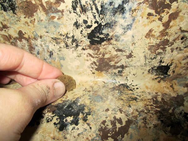 Para las grietas y otros lugares que no podía alcanzar la esponja me corte un trocito pequeño de esponja y aplica la pintura con.
