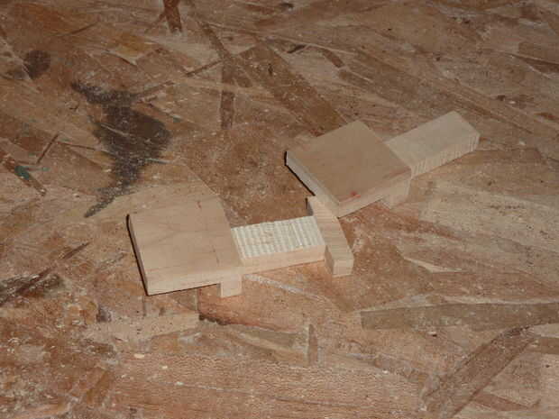 9.) encaje las piezas debe ir muy facilmente, con poca fuerza. No use martillos! Martillos tienden a romperse las piezas (ver foto!) Pero incluso si se rompe una pieza, pegamento de madera lo puede salvar.