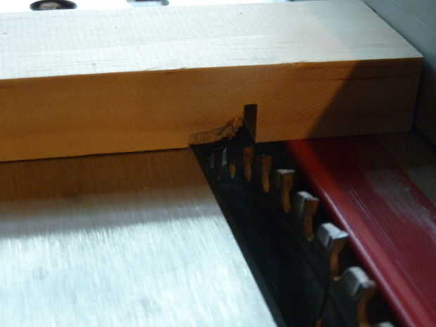 2.) saber el los defectos de sus sierras y plan por consiguiente. Ya que soy un estudiante graduado, tengo la tabla más barata Sierra que Craftsman tiene que ofrecer. Después de mucha frustración, sé que le gusta romper las virutas de madera a la izquierda de la hoja (ver foto) y la hoja es siempre aproximadamente 1 grado fuera perpendicular a la mesa.