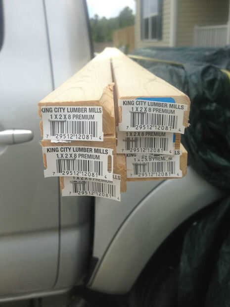 Usé 1 X 2 que vinieron de mi local Lowe. Usted puede conseguirlos en paquetes de 6, y si usted compra un mínimo de 48 puede conseguirlos a 88 centavos. Ahora después de los suministros puede figura a lo largo y ancho que desee tus cajones que...