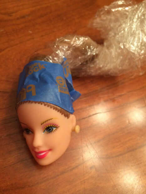 Con saran wrap & azul cinta de pintor puede crear una simple máscara para conservar el color original del pelo de la muñeca. Sobre una superficie plana, coloque una tira de saran wrap aproximadamente dos veces tan largo como el pelo. En un extremo de la envoltura saran, coloque una tira de 3 pulgadas de cinta azul. La mitad de la cinta debe estar conectada al abrigo de saran y medio la cinta se expone. Envuelva la parte expuesta de la cinta a lo largo de la línea del cabello de la muñeca abrigo el abrigo de saran en pelo de la muñeca a la portada.